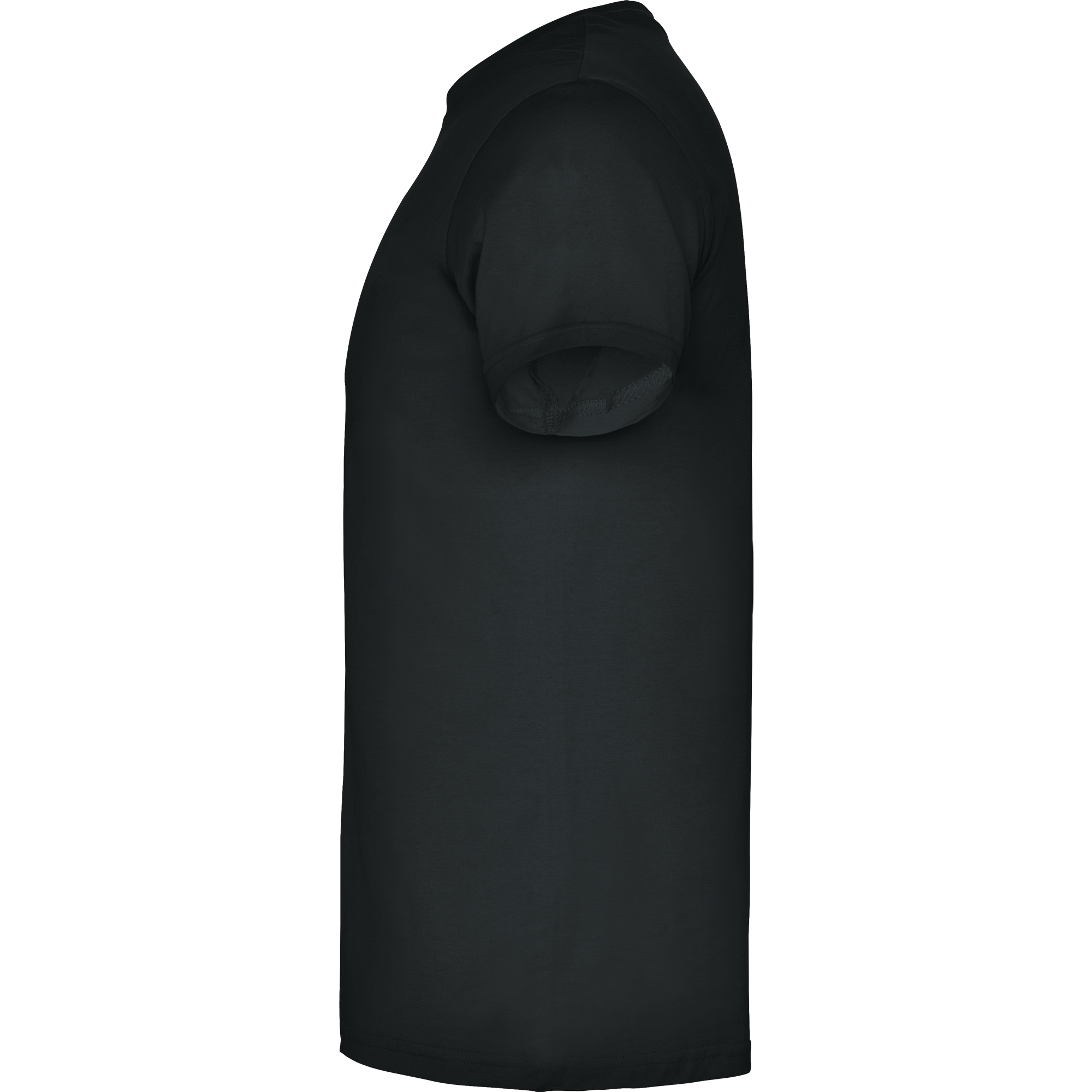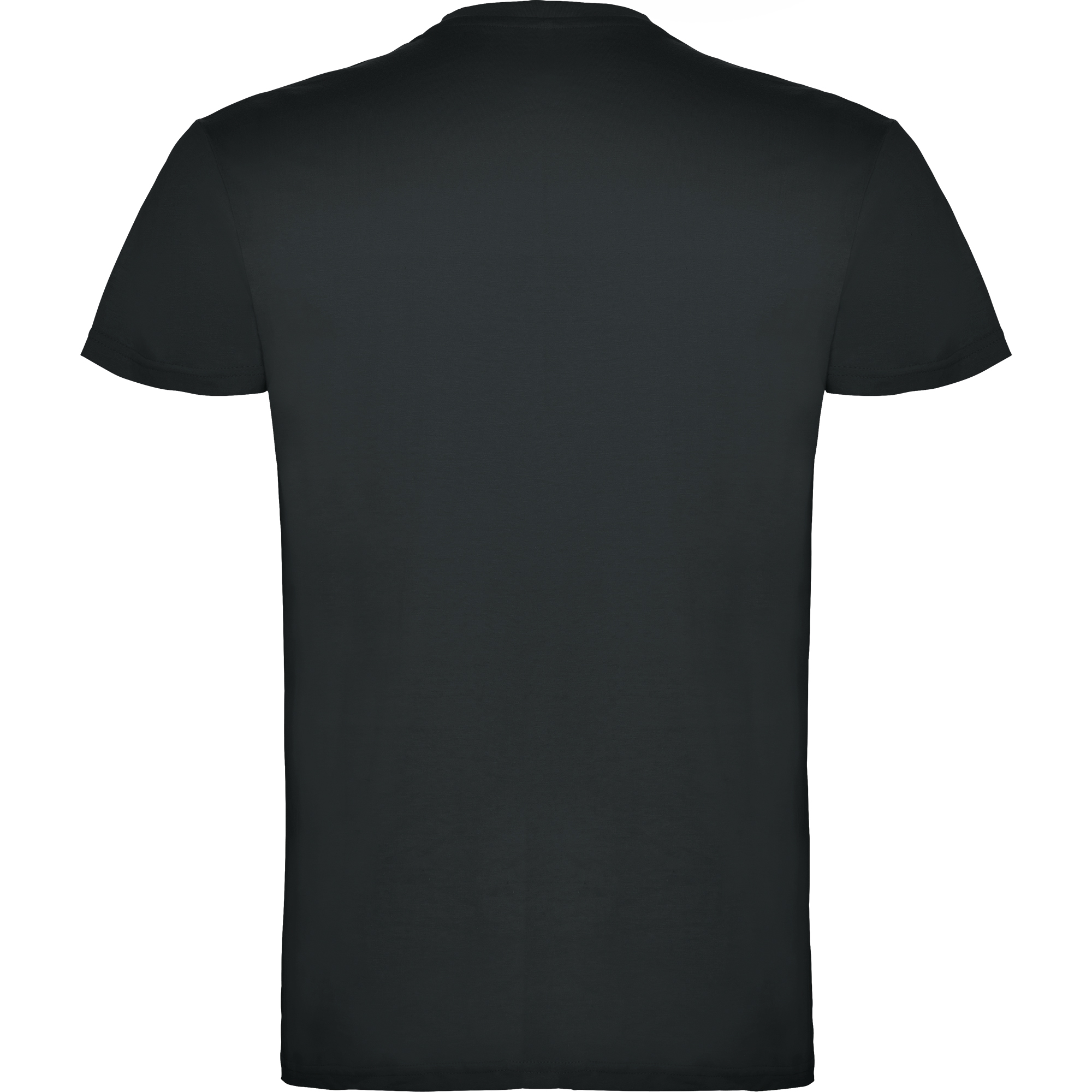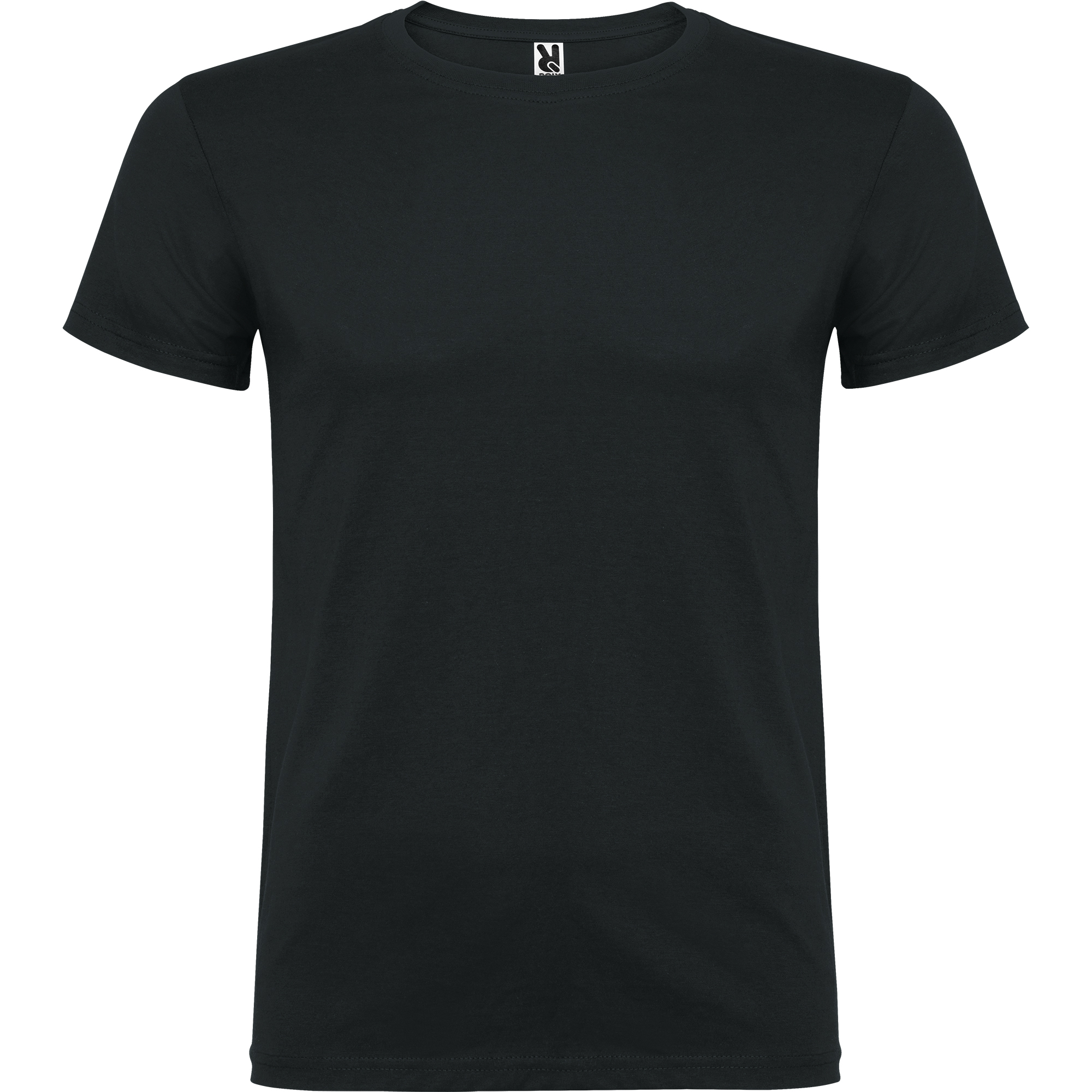 Camiseta de manga corta de cuello redondo doble con elastano, confeccionada en tejido tubular en tallas de adulto, y con costuras laterales en tallas de niño, con cubrecosturas reforzado en cuello.