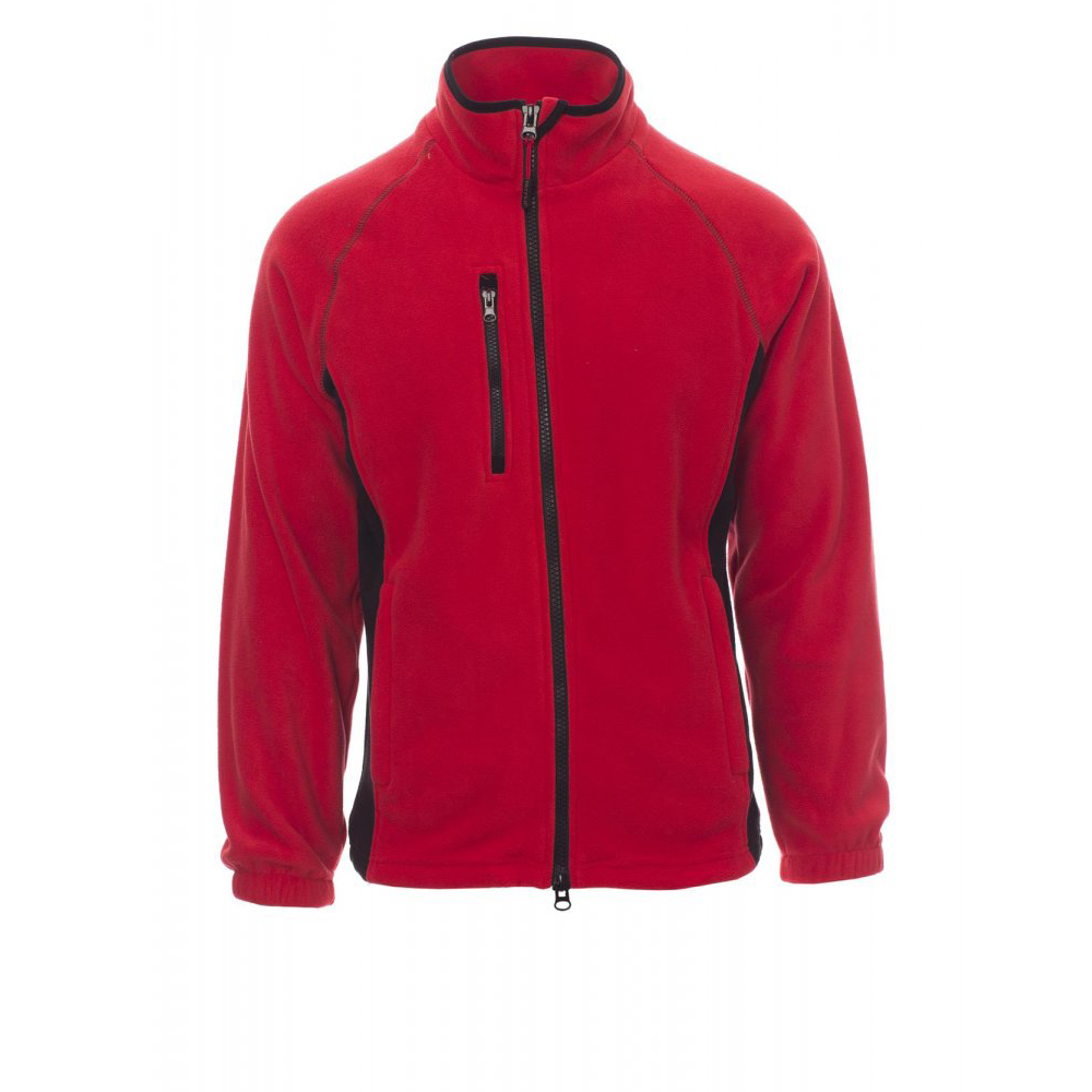 Forro polar en dos tonalidades para hombre, con cremallera de 8 mm de plástico negra, mangas ranglán, cordón ajustable en la cintura, puños elásticos, dos bolsillos con cremallera oculta, un bolsillo delantero con cremallera, cuello con cinta de refuerzo de contraste, costuras reforzadas.