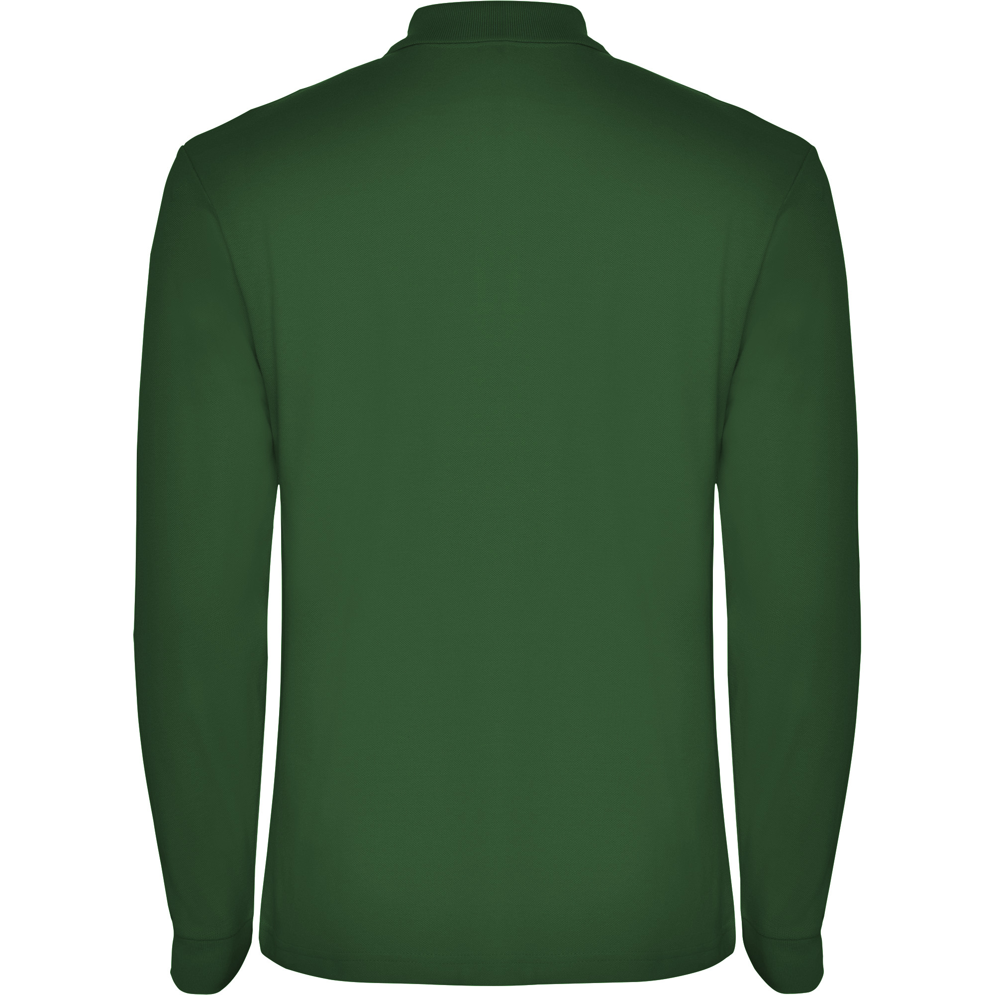 Polo de manga larga, cuello y bocamangas acanalado, tapeta de 3 botones y puños canalé 1×1 con elastano. Cubrecosturas reforzado en cuello.